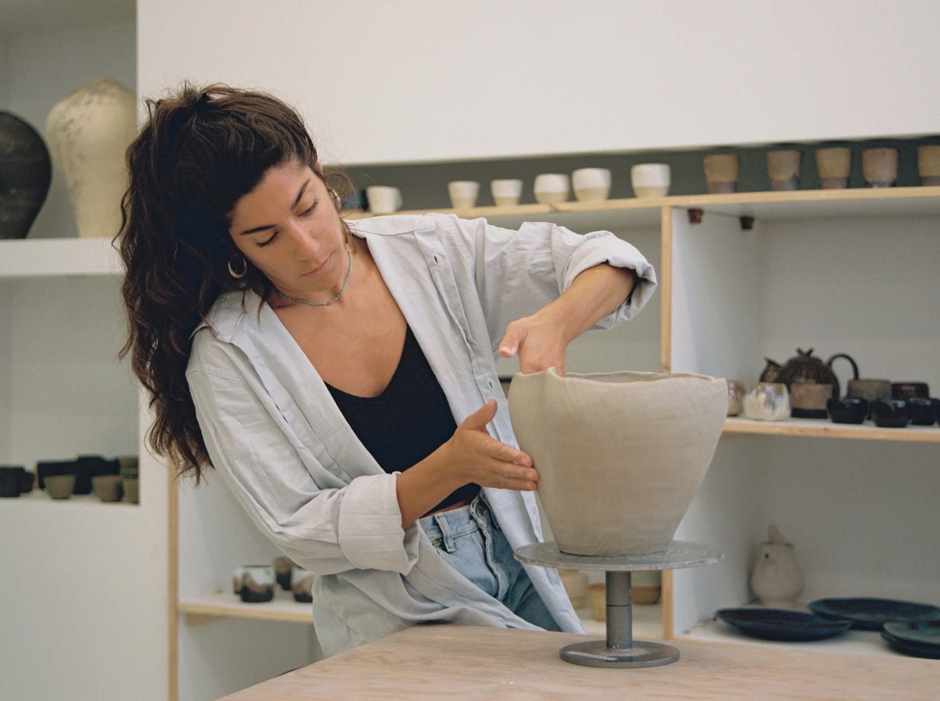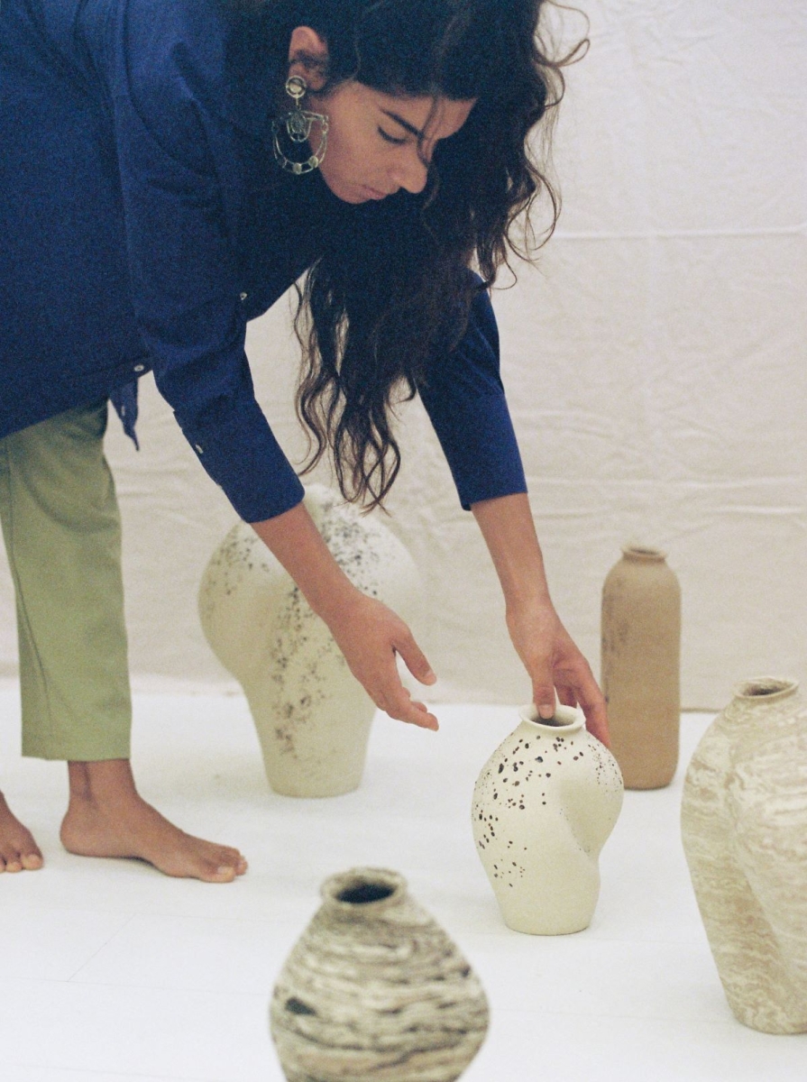 Inspired by nature and the passage of time, her hand-built ceramics embrace the beauty of imperfection, evoking nostalgia through marks of corrosion. Using techniques like the coiling method, each high-fired piece is entirely unique.