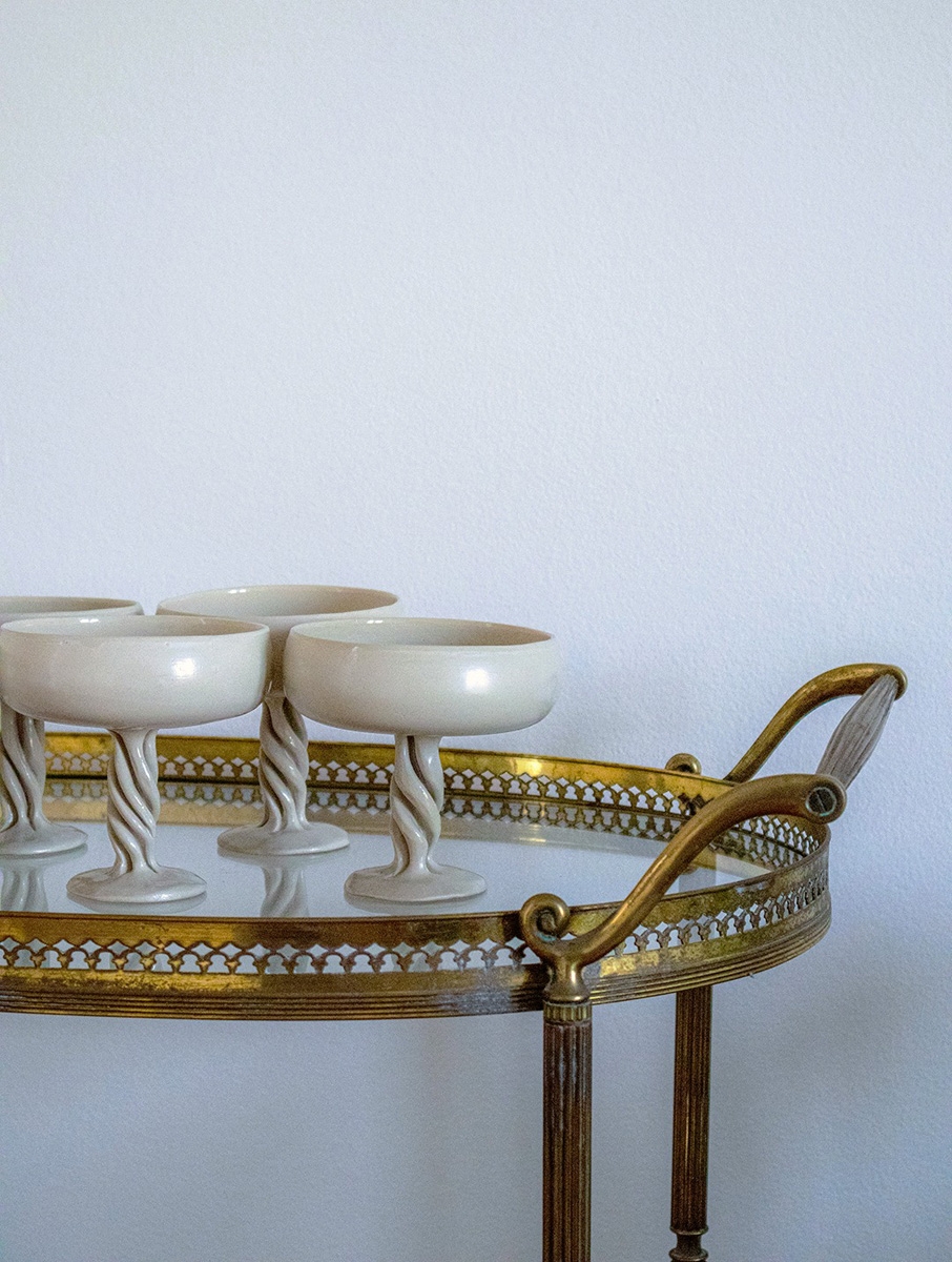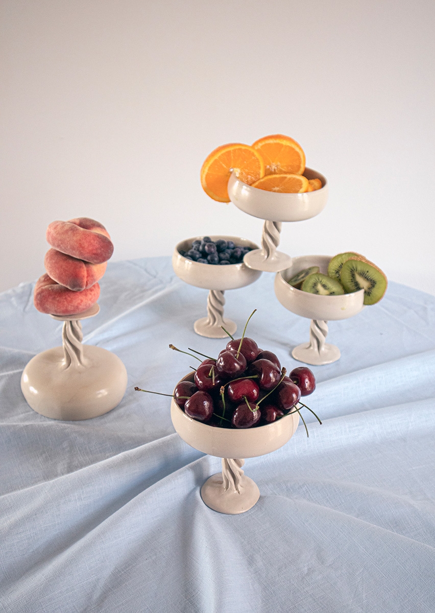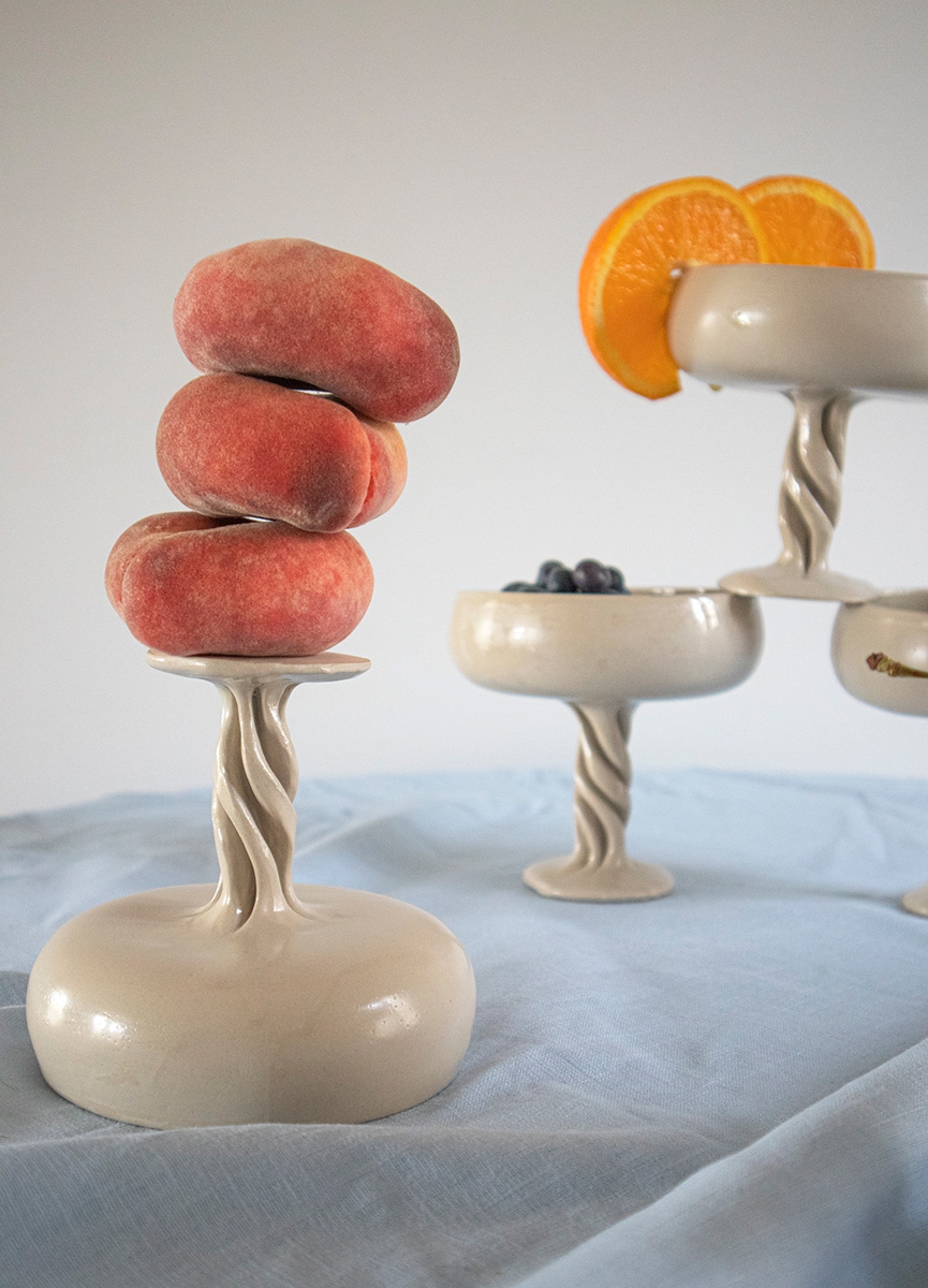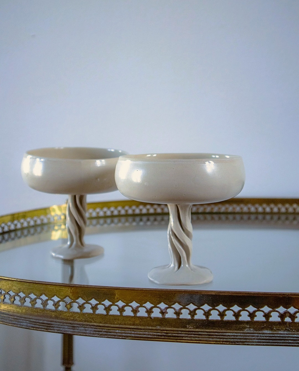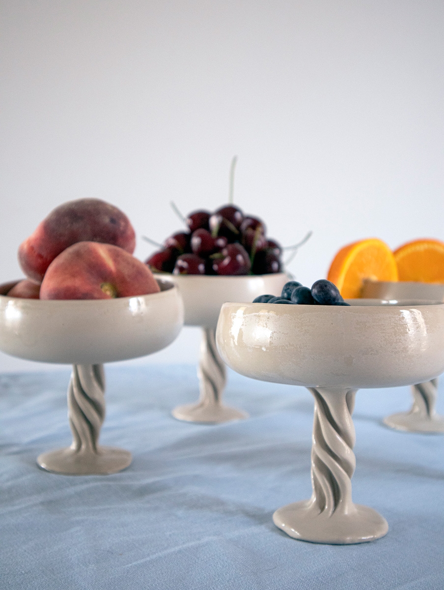 Καλούπια, κάθε στέλεχος είναι σμιλεμένο στο χέρι. Κεραμικό από λευκό πηλό, επικαλυμμένο με διαφανές σμάλτο.