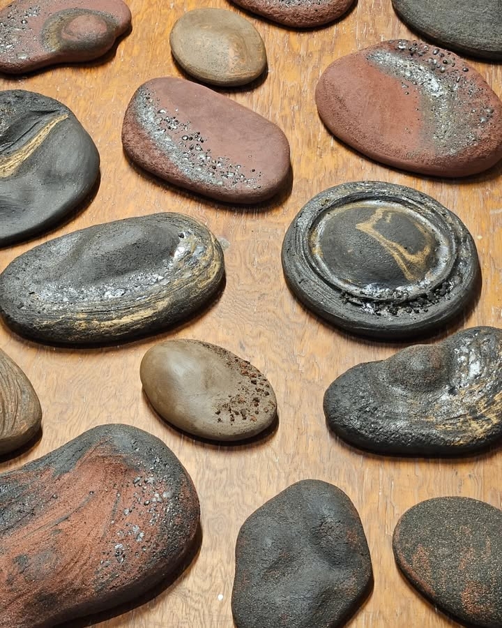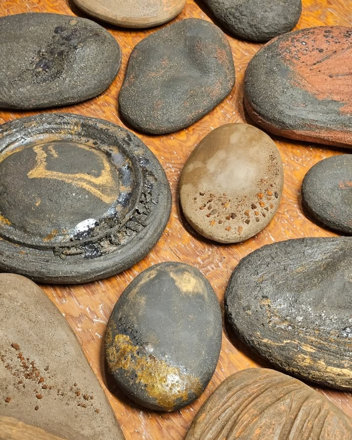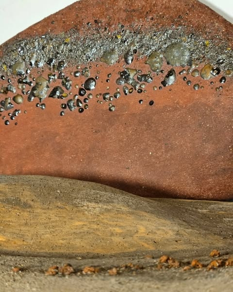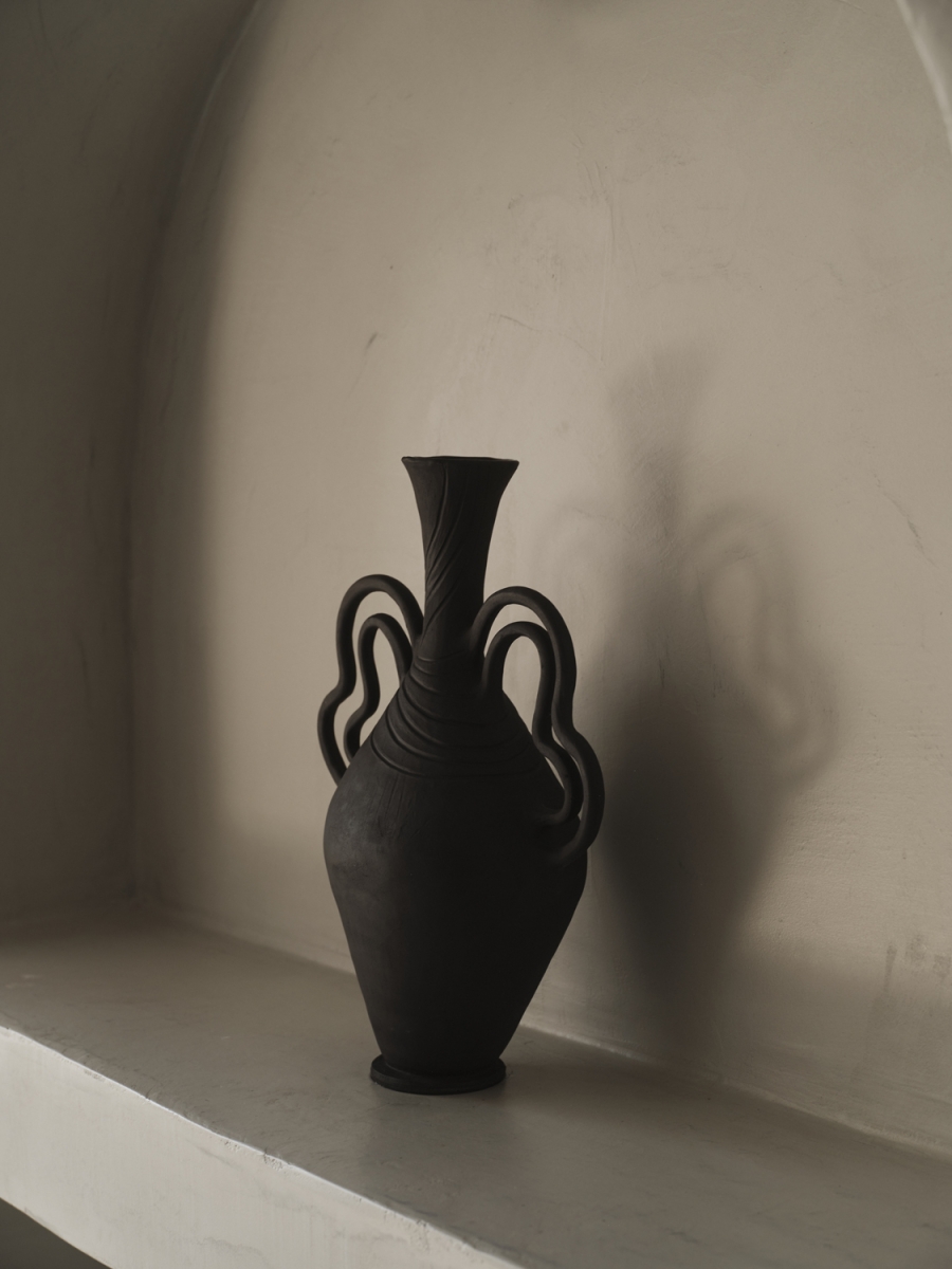 The piece draws inspiration from the island’s volcanic landscapes, expressed through organic forms, earthy tones, and tactile surfaces. Crafted from red, black, and brown stoneware clay, enriched with ashes from vines and volcanic rocks, it embodies a sense of natural depth and grounded energy.