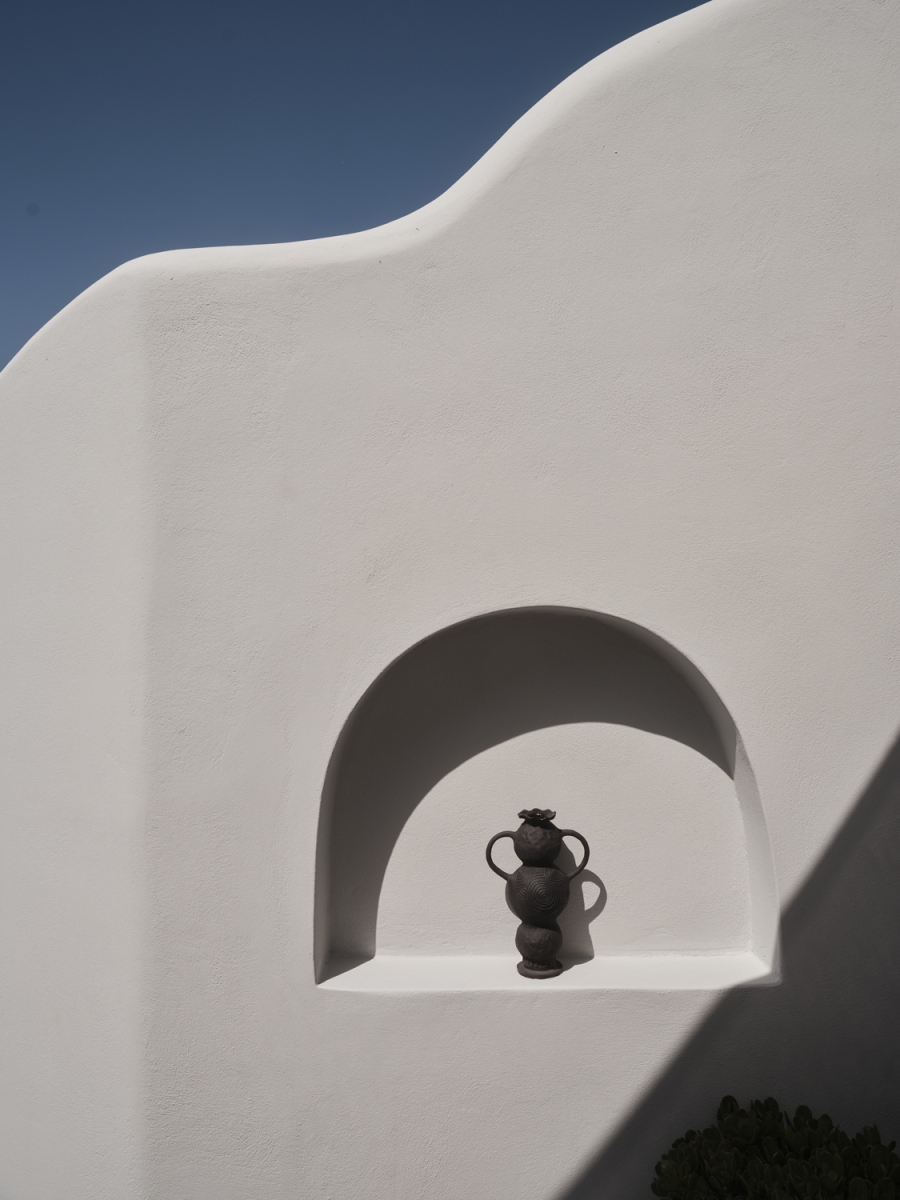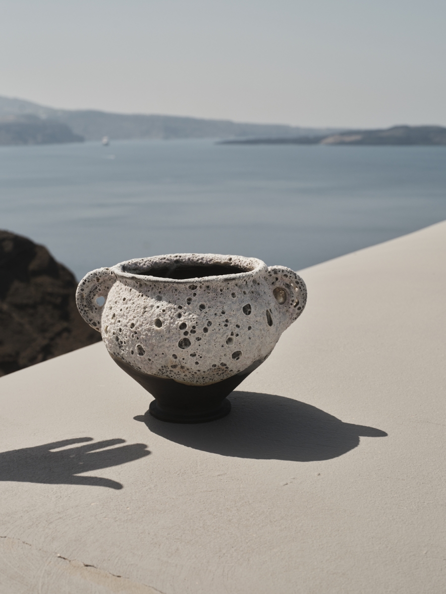 Each piece reflects the island’s raw minimalism and organic textures — forms that echo the volcanic landscape and the interplay of light and shadow that defines the Cycladic architecture.